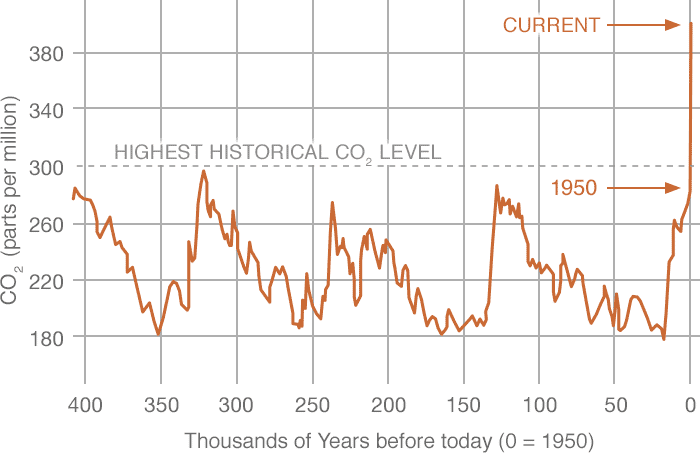 Proxy measurements of carbon dioxide from ice cores (NOAA @ NASA Climate Change) https://climate.nasa.gov/vital-signs/carbon-dioxide/